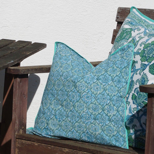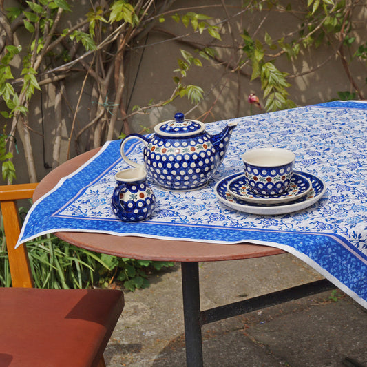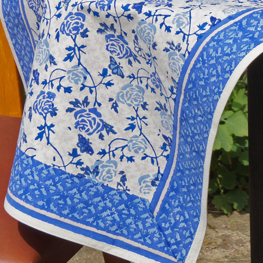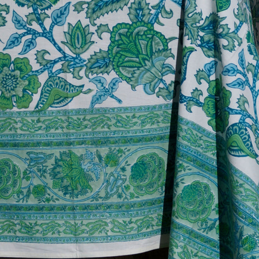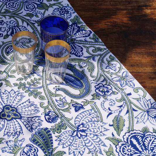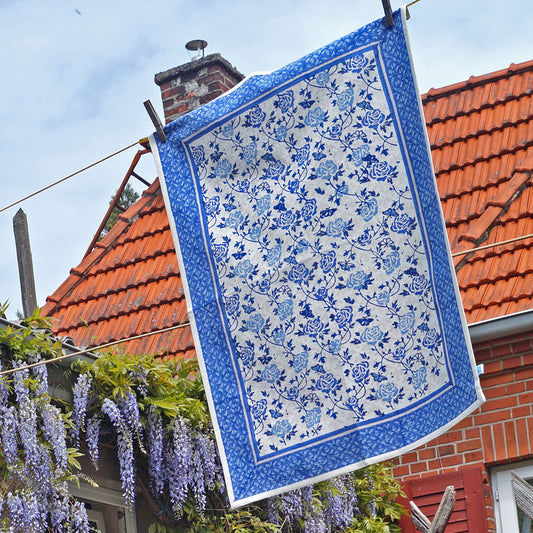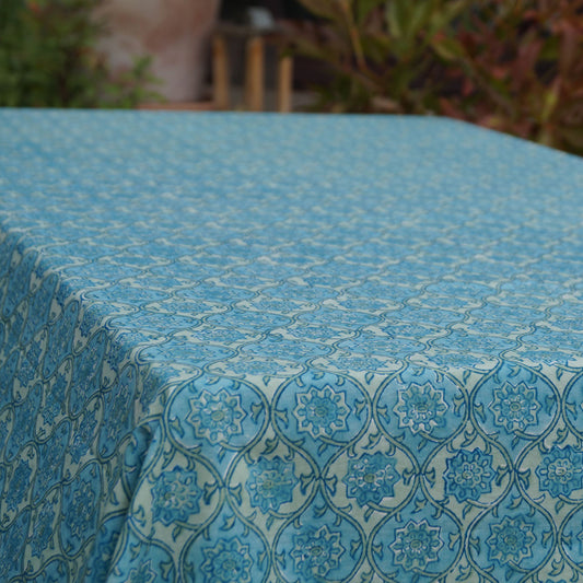 Tischdecke Blockprint Aqua Vita ca.140x220
